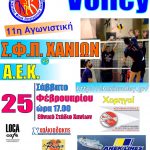 Την Α.Ε.Κ. υποδέχεται η ομάδα μας το Σάββατο στις 5μμ. στο ΕΑΚ Χανίων. Ο αγώνας είναι στο πλαίσιο της 12ης αγωνιστικής και η αναμέτρηση των 2 ομάδων είναι υψηλού βαθμολογικού και αγωνιστικού ενδιαφέροντος. Θυμίζουμε ότι στον αγώνα του 1ου γύρου ο Σ.Φ.Π.ΧΑΝΙΑ αν και βρέθηκε πίσω στο σκορ με 2-0 τελικά κέρδισε με σκορ 2-3 σετ. Στην βαθμολογία η ΑΕΚ είναι 4η έχοντας 15 βαθμούς, ενώ η ομάδα μας έχει 12 και βρίσκεται στην 7η θέση.